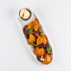 - 160 g (čokoládový mousse, crumble z lesných plodov, vanilková zmrzlina)7