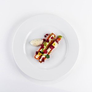 - 140 g (krém z ricotty, bylinkový dip, blašírovaná cvikla)7